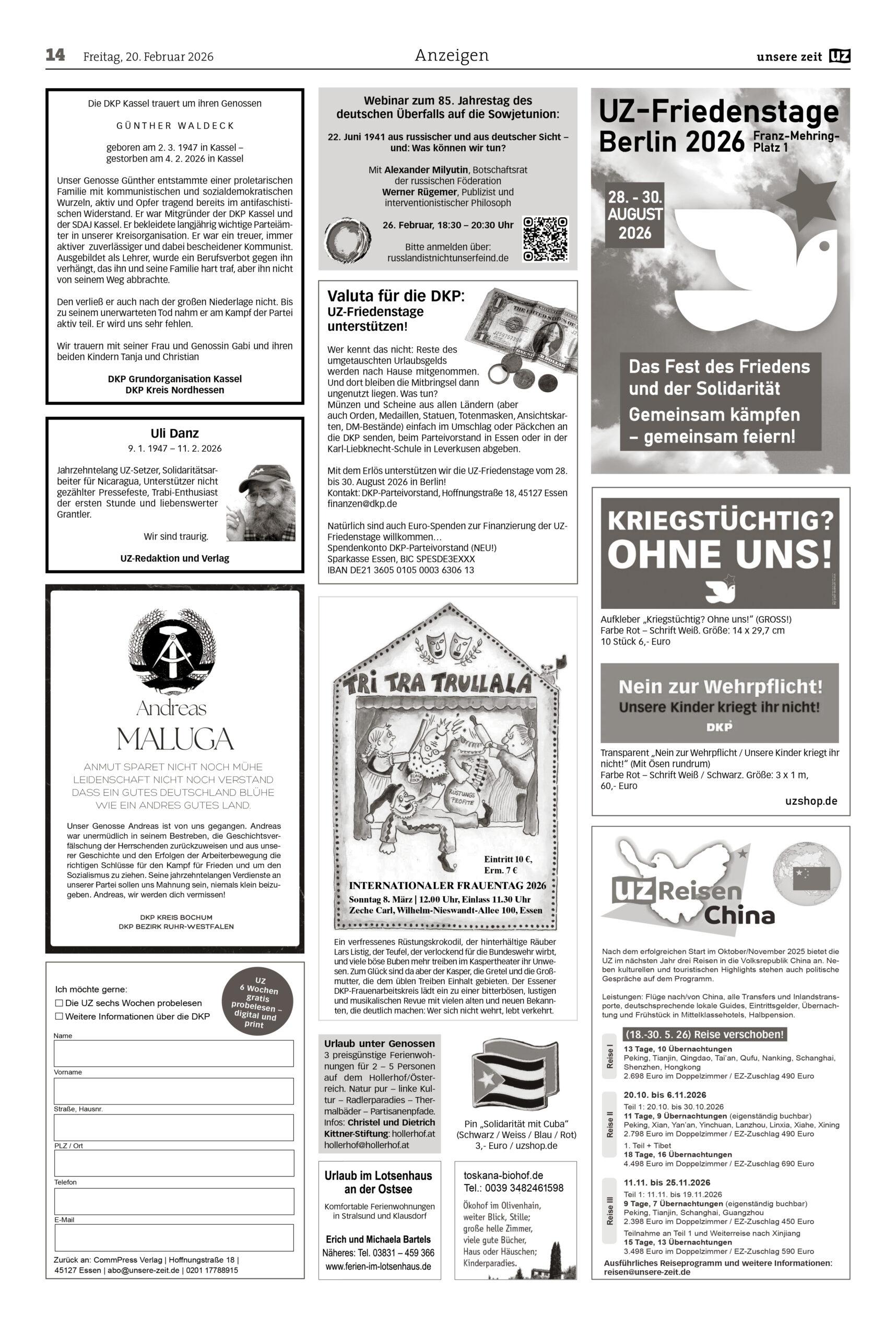 An die UZ-Redaktion (leserbriefe (at) unsere-zeit.de)