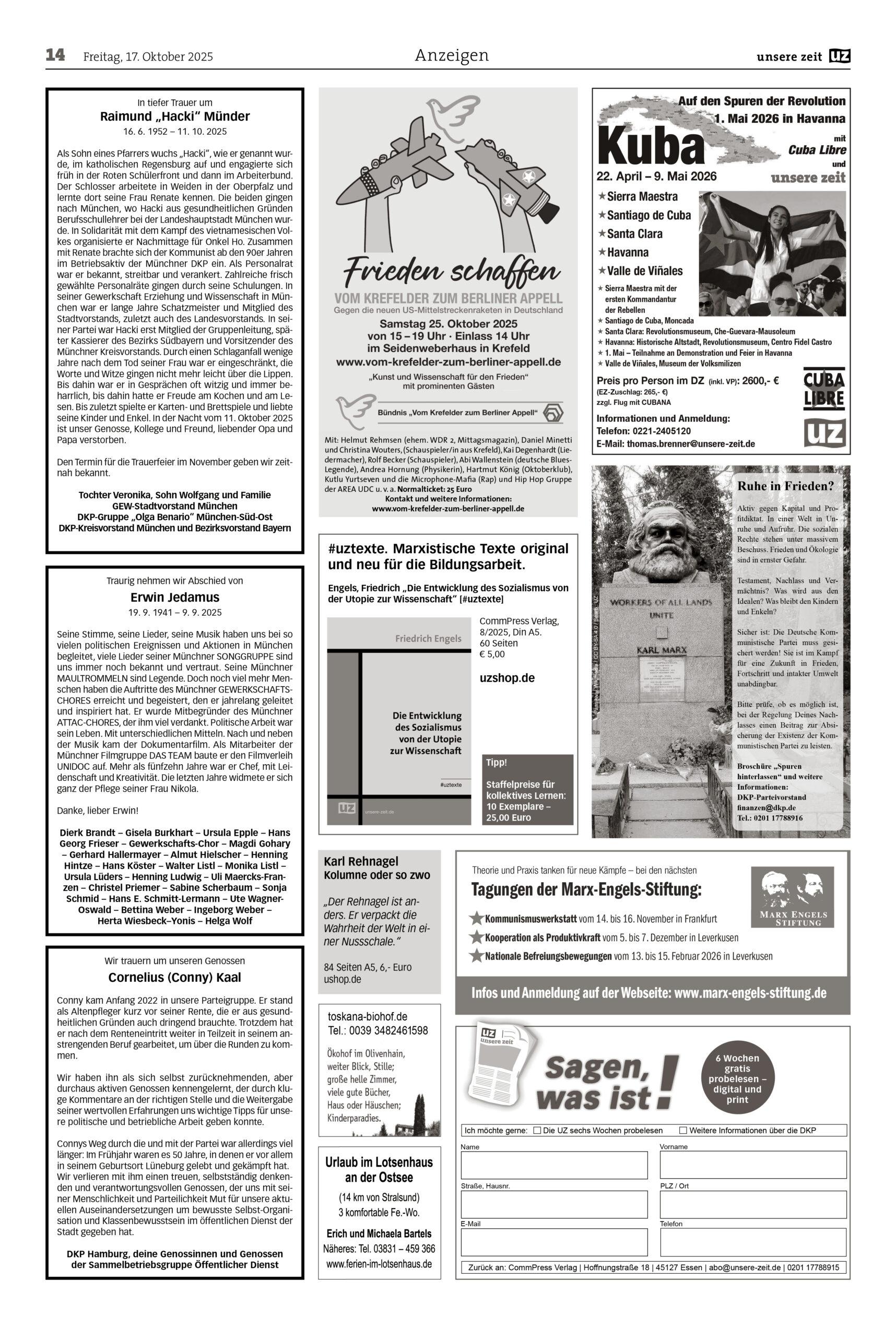 An die UZ-Redaktion (leserbriefe (at) unsere-zeit.de)