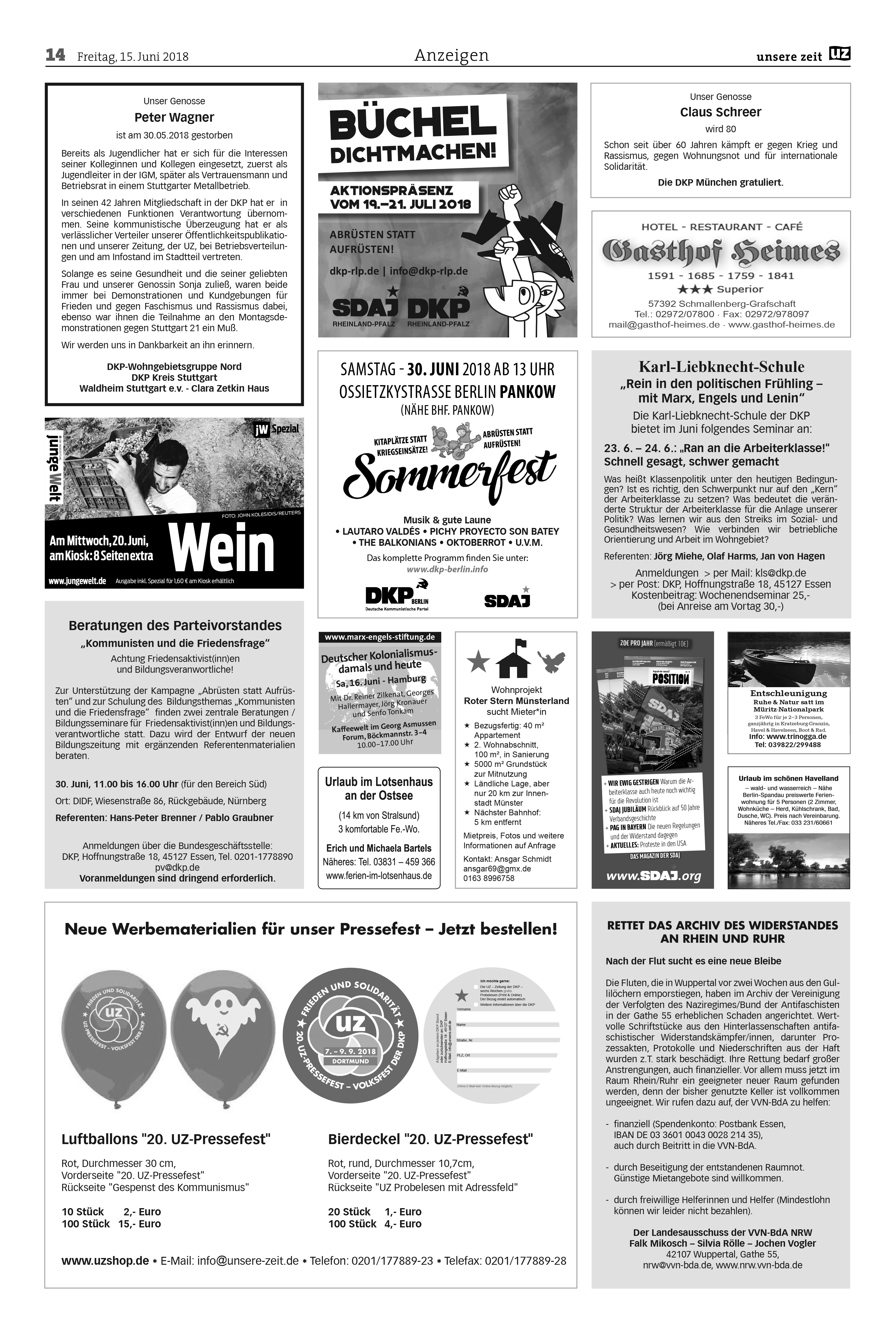 "Anzeigen 2018-24", UZ vom 15. Juni 2018