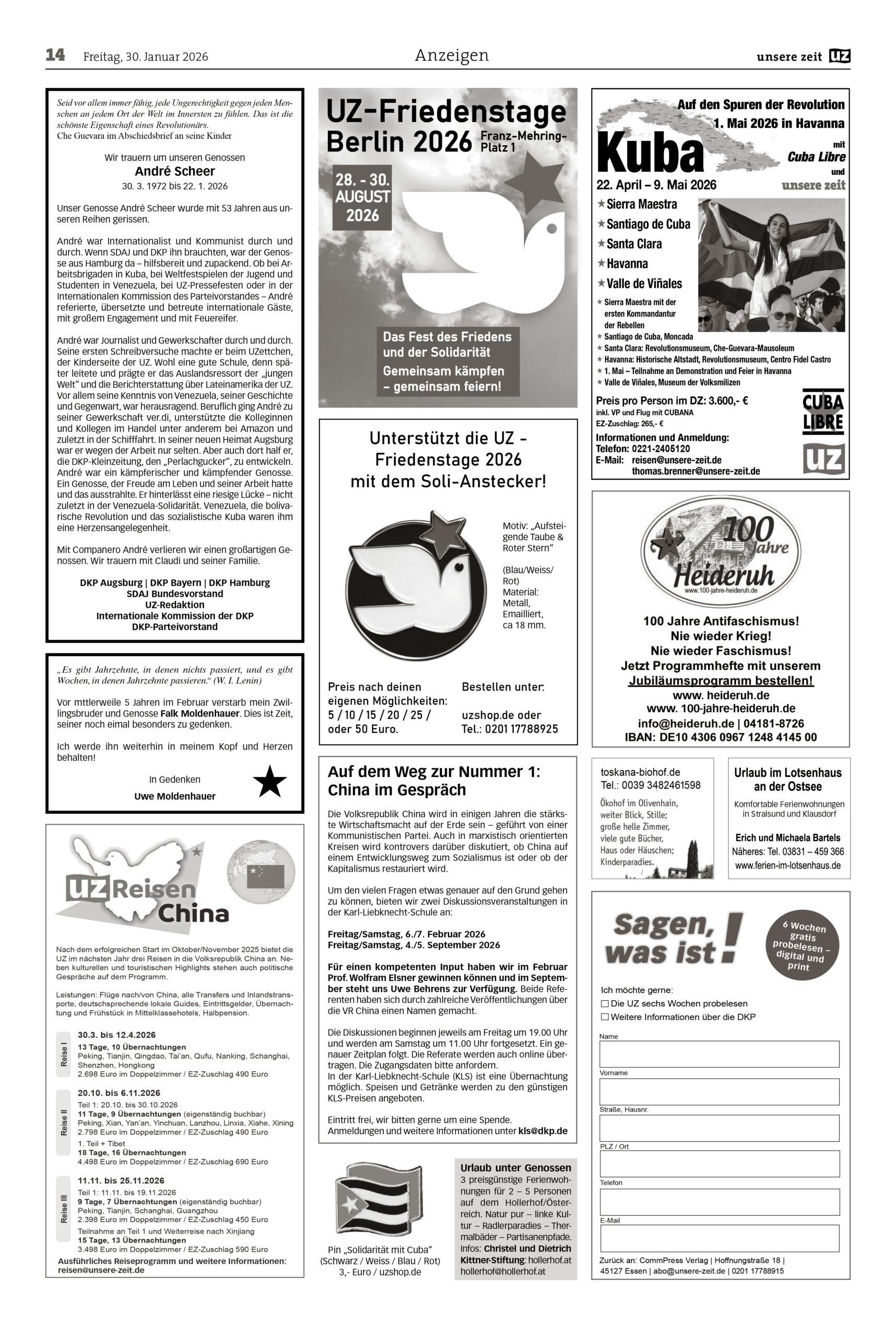 Dieser Artikel ist für Sie kostenlos. Kritischer Journalismus braucht allerdings Unterstützung, um dauerhaft existieren zu können. Daher freuen wir uns, wenn Sie sich für ein Abonnement der UZ (als gedruckte Wochenzeitung und/oder in digitaler Vollversion) entscheiden. Sie können die UZ vorher 6 Wochen lang kostenlos und unverbindlich testen.