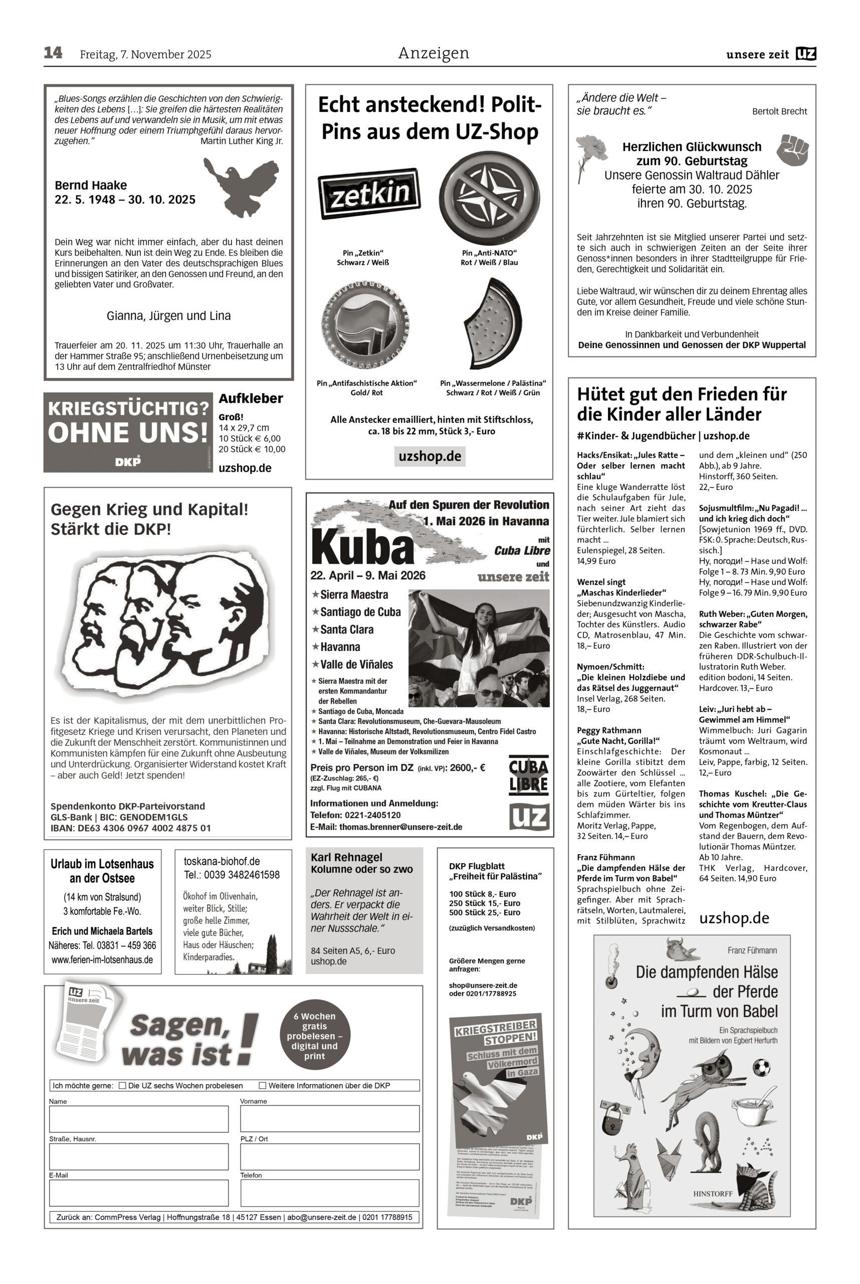 An die UZ-Redaktion (leserbriefe (at) unsere-zeit.de)