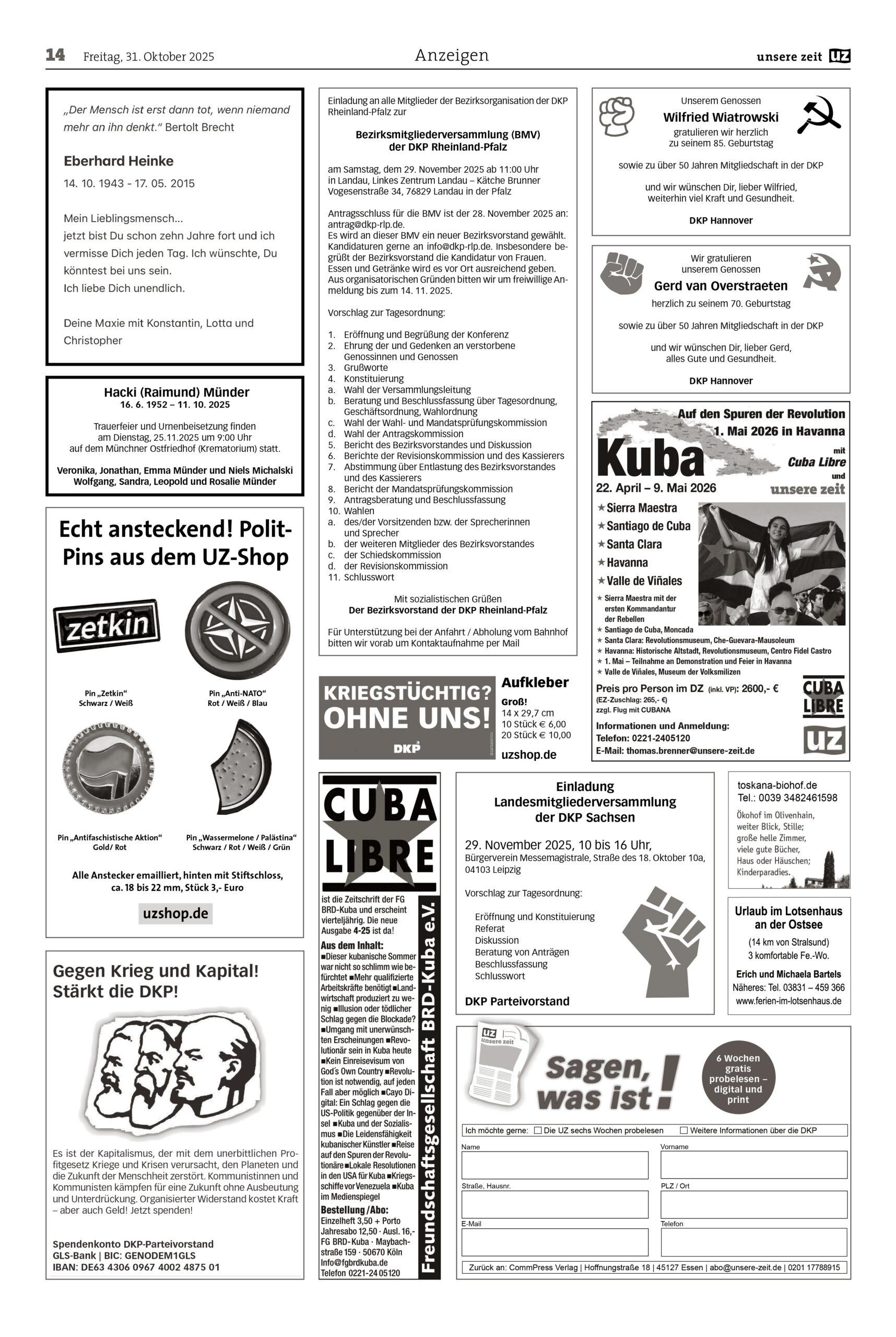 An die UZ-Redaktion (leserbriefe (at) unsere-zeit.de)
