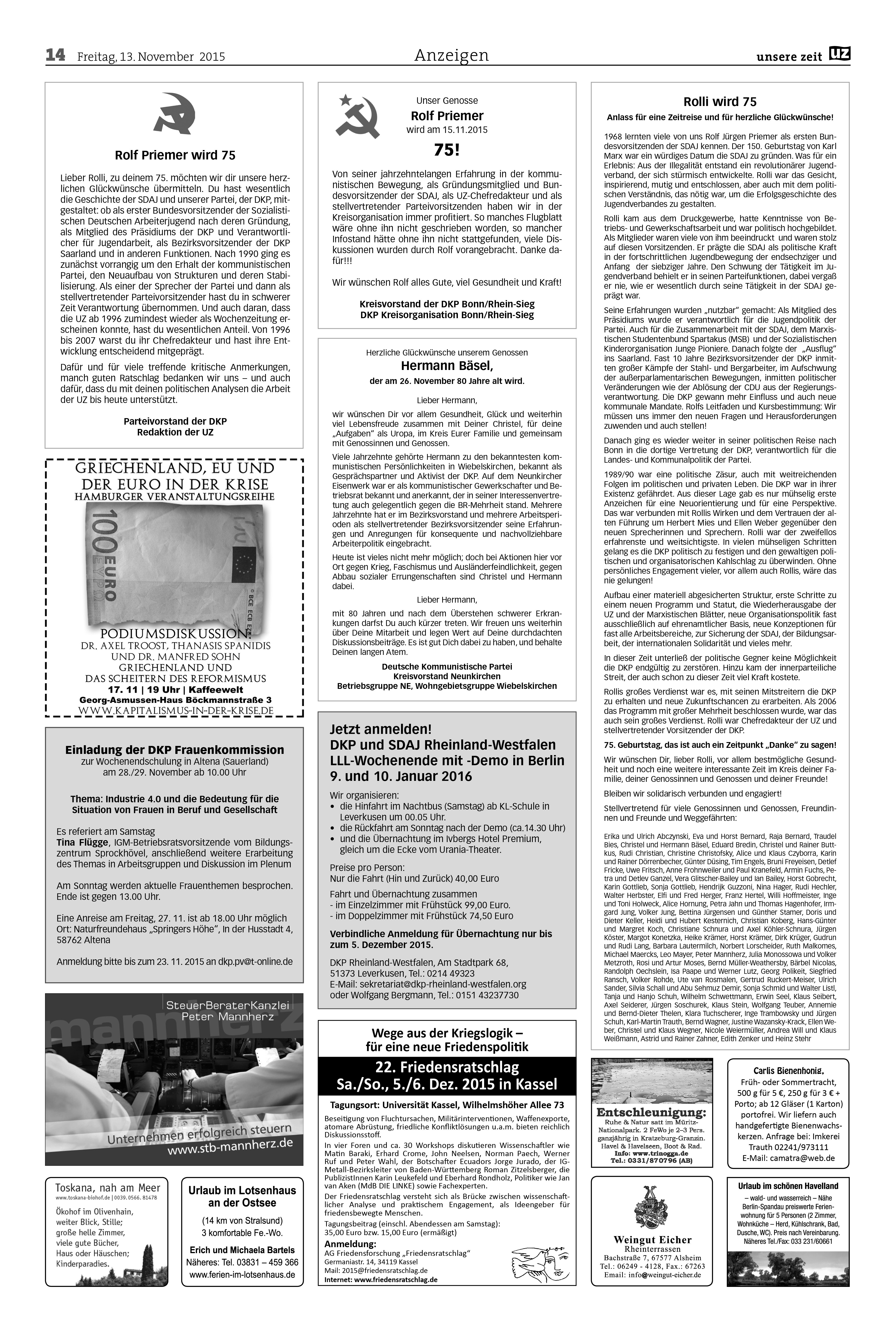 "Anzeigen 46/2015", UZ vom 13. November 2015
