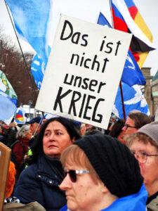 Wir akzeptieren nicht, dass Krieg immer alltäglicher wird und Deutschland einen wachsenden Beitrag dazu leistet: in Afghanistan, Irak, Libyen, Syrien, Jemen, Mali. Der Krieg in der Ukraine ist nicht gestoppt. Immer geht es letztlich um Macht, Märkte und Rohstoffe. Stets sind die USA, NATO-Mitgliedstaaten und deren Verbündete beteiligt, fast immer auch direkt oder indirekt die Bundesrepublik.