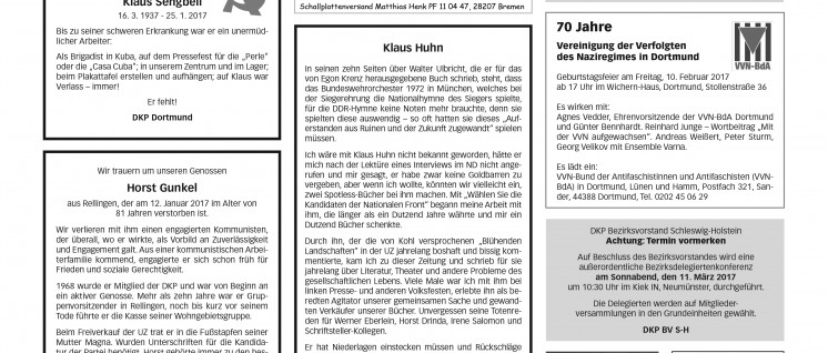 ![Unbedeutend - UZ vom 10. Februar 2017 - UZ vom 10. Februar 2017 „Dorfgemeinschaft Jamel – frei, sozial, national“: Die NPD ist nicht so unbedeutend, wie das Bundesverfassungsgericht behauptet. Gerade auf dem Land ist sie eine Stütze der Nazistrukturen. (Foto: [url=https://www.flickr.com/photos/133073376@N08/20079606153]Oliver Weber[/url])](https://www.unsere-zeit.de/wp-content/uploads/2019/10/unbedeutend.jpg)