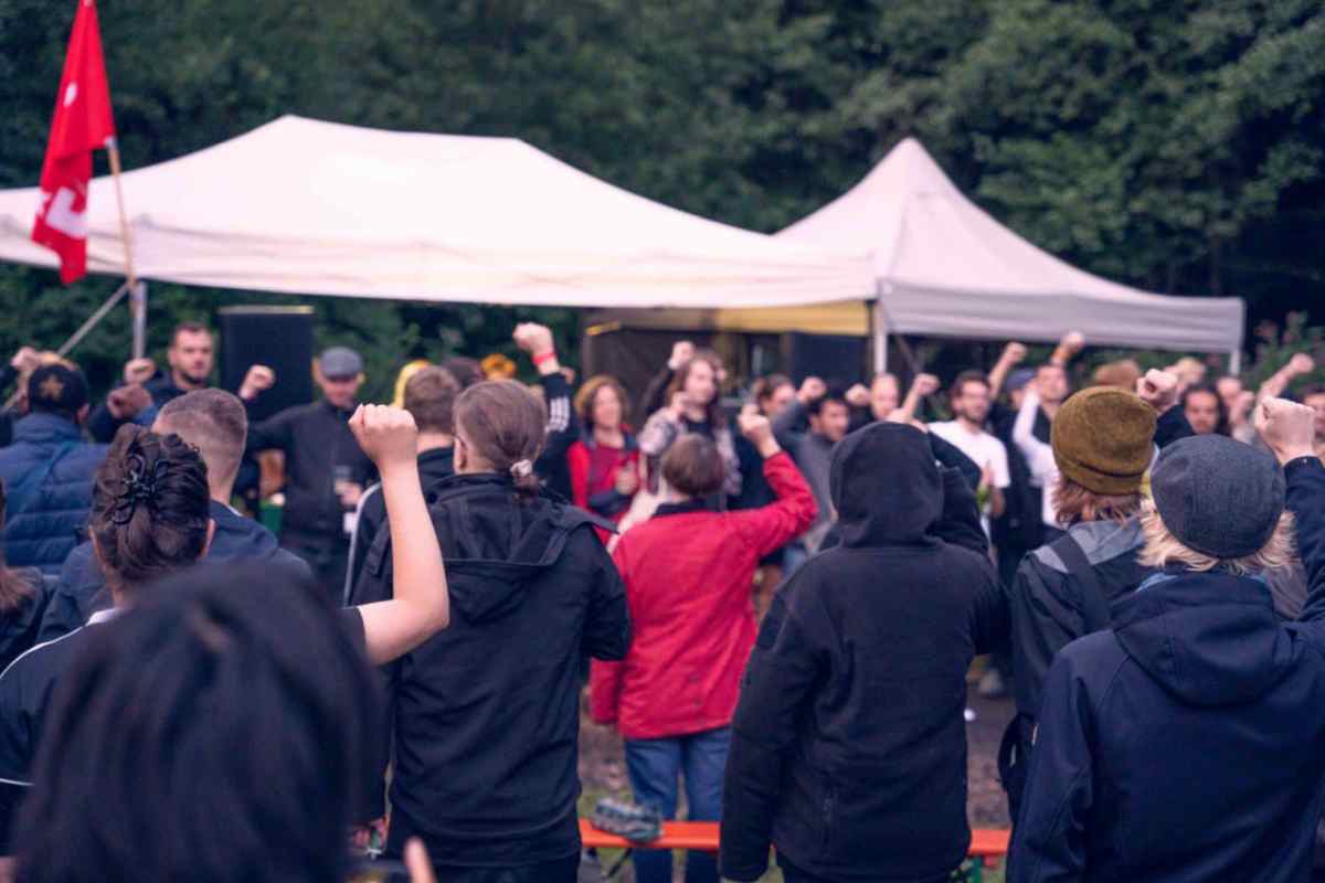 Bürgerschaftsabgeordnete Ulla Jelpke während einer Friedensdemonstration 1983 in Hamburg. (Foto: MoSchle / Wikimedia Commons / CC BY-SA 3.0)