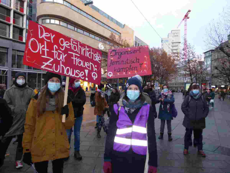 Protestaktion in Stuttgart 2021 unter dem Motto „Gewalt gegen Frauen* ist Alltag – We fight back“. (Foto: Christa Hourani)