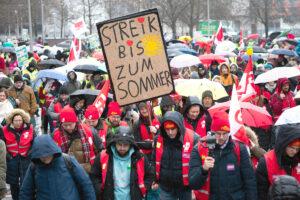 ZW50d2VkZXIgZWluZW4gSGF1c3RhcmlmIGFiZ2VzY2hsb3NzZW4gaGFiZW4gb2RlciBiZWkgZGVuZW4gZGVyIFRhcmlmdmVydHJhZyBmw7xyIGRlbiDDlmZmZW50bGljaGVuIERpZW5zdCAoVFbDtkQpIGdpbHQuIFNlaXQgRGV6ZW1iZXIgMjAyMyBsaWVmIGVpbmUgdW1mYXNzZW5kZSBCZWZyYWd1bmcgZGVyIEJlc2Now6RmdGlndGVuIGR1cmNoIEZvcmRlcnVuZ3NpbnRlcnZpZXdzLiBEaWUgVGFyaWZrb21taXNzaW9uLCB1bnRlcnN0w7x0enQgdm9uIFRhcmlmYm90c2NoYWZ0ZXJuIGF1cyBkZW4gQmV0cmllYmVuLCB3ZXJ0ZXRlIGRpZSBFcmdlYm5pc3NlIGF1cyB1bmQgZmFzc3RlIGRlbiBGb3JkZXJ1bmdzYmVzY2hsdXNzLgoKCgpEaWUgU2FuYS1HZXNjaMOkZnRzZsO8aHJ1bmcgaGF0IGRpZSBGb3JkZXJ1bmdlbiBpbnp3aXNjaGVuIGVyaGFsdGVuLiBJbSBNYWkgZ2lidCBlcyBkaWUgZXJzdGUgVmVyaGFuZGx1bmdzcnVuZGUgbWl0IE1vcml0eiBFY2tlLCBkZW0gVGFyaWZ2ZXJhbnR3b3J0bGljaGVuIGF1cyBkZXIgTcO8bmNoZW5lciBLb256ZXJuemVudHJhbGUuIEVzIHdpcmQgaW4gZGllc2VyIFRhcmlmcnVuZGUgbWVociBBa3Rpb25lbiBhbHMgYmlzaGVyIGdlYmVuIHVuZCBzaWUgd2VyZGVuIGF1Y2ggZnLDvGhlciBiZWdpbm5lbi4gQXJiZWl0c3N0cmVpa3MsIGFrdGl2ZSBNaXR0YWdzcGF1c2VuIHVuZCBXYXJuc3RyZWlrcyBzaW5kIGluIGVpbmVyIFJlaWhlIHZvbiBTYW5hLUtsaW5pa2VuIGdlcGxhbnQuIERpZSBCZXJlaXRzY2hhZnQgenUgZWluZW0gQXJiZWl0c2thbXBmIGJpcyBoaW4genVtIFN0cmVpayBpc3QgZ2V3YWNoc2VuLiBEYXMgdHJpZmZ0IG5pY2h0IMO8YmVyYWxsIHp1LCBkYSBnZWh0IGVzIGFiZXIgdW0gbG9rYWxlIEJlc29uZGVyaGVpdGVuLgoKCgpJbSBLZXJuIGdlaHQgZXMgZsO8ciBkaWUgQmVzY2jDpGZ0aWd0ZW4gZGFydW0sIHdpcmtzYW1lIEF1c2dsZWljaGUgZsO8ciBkaWUgaW5mbGF0aW9uc2JlZGluZ3RlbiBSZWFsbG9obnZlcmx1c3RlIHp1IGJla29tbWVuLiBMZWlkZXIgd2lyZCBlcyBhdWNoIGluIGRpZXNlbSBKYWhyIGRpZSBBdXNlaW5hbmRlcnNldHp1bmcgbWl0IGRlbSBUaGVtYSBFaW5tYWx6YWhsdW5nZW4gZ2ViZW4uIFNhbmEga2FubiAyMDI0IG5vY2ggMi41MDDCoEV1cm8gc3RldWVyZnJlaSBwcm8gQmVzY2jDpGZ0aWd0ZW4gYXVzc2Now7x0dGVuLCBhbHMg4oCeSW5mbGF0aW9uc2F1c2dsZWljaHNwcsOkbWll4oCcLiBEaWVzZSBTdW1tZSB3aXJkIFNhbmEgd2llZGVyIGlucyBGZWxkIGbDvGhyZW4sIHVtIGVpbmUgc2NoZWluYmFyZSBBbHRlcm5hdGl2ZSBhdWZ6dW1hY2hlbi4gQWJnZXNlaGVuIGRhdm9uLCBkYXNzIGRlciBLb256ZXJuIGRpZXNlIGdhciBuaWNodCBzZWxic3QgZmluYW56aWVydCwgYmV0cmVpYnQgZGllIEdlc2Now6RmdHNmw7xocnVuZyBpbW1lciB3aWVkZXIgQXVnZW53aXNjaGVyZWkgbWl0IG5vbWluZWxsIGhvaGVuIEJldHLDpGdlbiwgZGllIGFiZXIgbmljaHQgdGFiZWxsZW53aXJrc2FtIHNpbmQuIEhpZXIgd2lyZCBhdWZzIE5ldWUgQXVma2zDpHJ1bmdzYXJiZWl0IHZvciBhbGxlbSBiZWkgZGVuIG5pY2h0b3JnYW5pc2llcnRlbiBCZXNjaMOkZnRpZ3RlbiBub3R3ZW5kaWcgc2Vpbi4gMjAyMiBnZWxhbmcgZXMgZGVyIEdlc2Now6RmdHNmw7xocnVuZywgZGFtaXQgVGVpbGUgZGVyIEJlbGVnc2NoYWZ0IHZvbSBBcmJlaXRza2FtcGYgYWJ6dWhhbHRlbiwgc2VsYnN0IGltIGthbXBmZXJwcm9idGVuIEtsaW5pa3VtIExpY2h0ZW5iZXJnLgoKCgpEaWUgdmVyLmRpLU1pdGdsaWVkZXIgc2luZCBpbiBkaWVzZW0gSmFociBiZXNzZXIgdm9yYmVyZWl0ZXQuIERlciBLYW1wYWduZW5wbGFuIHN0ZWh0LCBBa3Rpb25lbiBpbiB1bmQgdm9yIGRlbiBCZXRyaWViZW4gc2luZCBpbiBQbGFudW5nLiBJbiBkZW4gQWt0aW9uc2Zvcm1lbiB3aXJkIGVpbmUgc2NobmVsbGVyZSBFc2thbGF0aW9uIG3DtmdsaWNoIHNlaW4uIERlciBPcmdhbmlzYXRpb25zZ3JhZCBpc3QgaW4gZGVuIEtsaW5pa2VuIGRldXRsaWNoIGdlc3RpZWdlbiwgZGllIHZlci5kaS1CZXRyaWVic2dydXBwZW4gc2luZCBpbiBlaW5pZ2VuIEjDpHVzZXJuIHNlaHIgYWt0aXYuIERpZSBtZWlzdGVuIEJlbGVnc2NoYWZ0ZW4gaGFiZW4gZXJrbMOkcnQsIGRhc3Mgc2llIHN0cmVpa2JlcmVpdCBzaW5kLgoKCgpWb24gZGVyIEtsaW5pa2xlaXR1bmcgaXN0IHZvcmVyc3Qgd2VuaWcgenUgZXJ3YXJ0ZW4uIFNpZSB3aXJkIGRpZSBFaW5tYWx6YWhsdW5nIGJld2VyYmVuLCBkYW5hY2ggc2luZCBTcGFsdHVuZ3N2ZXJzdWNoZSBkdXJjaCBBbmdlYm90ZSBhbiBlaW56ZWxuZSBHcnVwcGVuIHp1IGVyd2FydGVuLCB2b3IgYWxsZW0gYW4gZGllIFBmbGVnZS4gVW5kIGRpZSBLcmlzZSBkZXIgS3JhbmtlbmhhdXNmaW5hbnppZXJ1bmcgd2lyZCBnZXJuIGFscyBWb3J3YW5kIGJlbnV0enQsIHVtIEZvcmRlcnVuZ2VuIG5hY2ggYmVzc2VyZXIgQmV6YWhsdW5nIGFienViw7xnZWxuLiBUYXRzw6RjaGxpY2ggc2NocmVpYnQgZGVyIFNhbmEtS29uemVybiBzY2h3YXJ6ZSBaYWhsZW4uIFRyb3R6IENvcm9uYSB1bmQgc2Nod2Fua2VuZGVuIFBhdGllbnRlbnphaGxlbiBtYWNodCBTYW5hIEdld2lubi4gU28gaXN0IGVzIGF1Y2ggbcO2Z2xpY2gsIGRhc3MgZGllIEtsaW5pa2tldHRlIGVpbiBLcmFua2VuaGF1cyBuYWNoIGRlbSBhbmRlcmVuIGthdWZ0LCBiZXNvbmRlcnMgaW4gZGVuIMO2c3RsaWNoZW4gQnVuZGVzbMOkbmRlcm4u