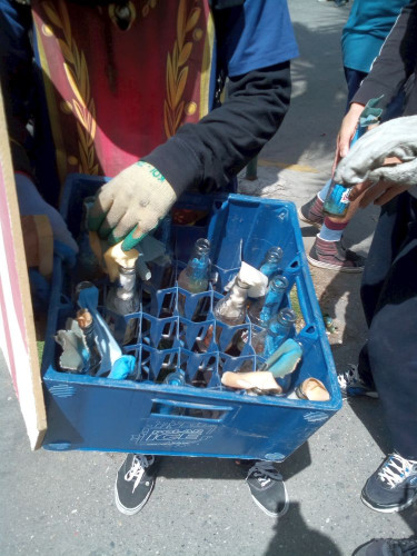 Die Opposition hat sich für die Straßenkämpfe mit Molotow-Cocktails ausgerüstet. Als Mainstream-Medium könnte man auch schreiben: „Friedliche venezolanische Opposition verteilt Getränke an notleidende Bevölkerung.“