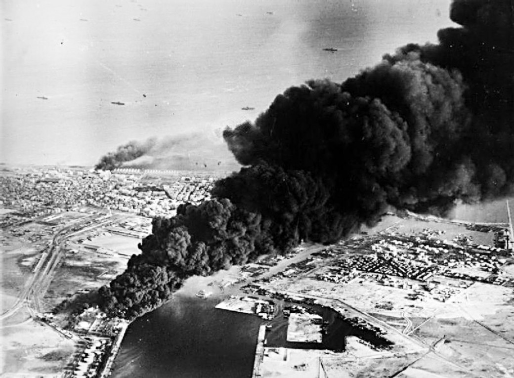 Rauch steigt aus Öltanks neben dem Suez-Kanal auf: Der erste anglo-französische Angriff auf Port Said am 5. November 1956