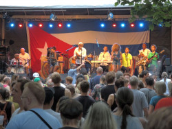 Heiße karibische Klänge auf der Bühne und ein kühles Bier für die ehemaligen Kosmonauten Sigmund Jähn (DDR) und Arnaldo Tamayo (Kuba) gab es am vergangenen Samstag in Berlin auf der Fiesta de Solidaridad im Stadtpark Lichtenberg. Solidaritätsgruppen wie Cuba Sí und die Freundschaftsgesellschaft BRD-Kuba sowie Gruppen aus mehreren europäischen Ländern stellten sich und ihre Arbeit vor. Die Fiesta de Solidaridad ist eine der größten regelmäßigen Veranstaltungen der Solidarität mit dem sozialistischen Kuba.