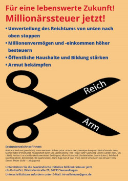 Es ist kein Zufall, dass sich an der Saar ein breites Personenbündnis „Millionärssteuer jetzt!“ gegründet hat und seit letzter Woche Unterschriften für seine Forderungen sammelt.