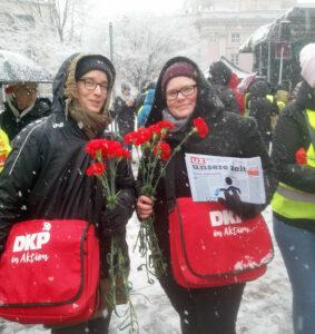 In Dresden stehen Schulsozialarbeiter, Senioren-, Familien- und psychosoziale Beratungsstellen, Gesundheitskollektive und Einrichtungen für Migranten auf der Streichliste. Tausende demonstrierten in den letzten Wochen dagegen. Es war nicht zuletzt die SDAJ, die in ihren Reden den Zusammenhang klar machte: Das Geld, das hier gespart wird, fließt in die Kassen der Kriegsprofiteure! In Berlin rief die GEW Lehrer zum Warnstreik und wusste auf einem Transparent: „Rüstung runter, Bildung rauf – Friedens- und Entspannungspolitik jetzt.“ In vielen Städten sind trotz ätzenden Wetters Aktive der Friedensbewegung und der DKP mit dem Berliner Appell unterwegs – sogar auf Weihnachtsmärkten. Die Erfahrungen sind gut – teilweise unterschreibt jeder Zweite gegen die Stationierung neuer US-Raketen. Der Wahlkampf hat begonnen – nicht nur im Bundestag, sondern auch auf der Straße.