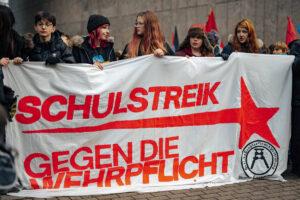 An vielen Orten konnten die Schülerinnen und Schüler am 5. Dezember bei ihren Aktionen gegen die Wehrpflicht auf Unterstützung bauen. Gruppen der Friedensbewegung, Gewerkschafterinnen und Gewerkschafter, Eltern, Großeltern und Lehrerinnen und Lehrer reihten sich ein in die Demonstrationen. In Berlin sprach Matthew Read, Mitglied der DKP und Vater von zwei Kindern, zu den Jugendlichen. Wir veröffentlichen im Folgenden seine Rede: