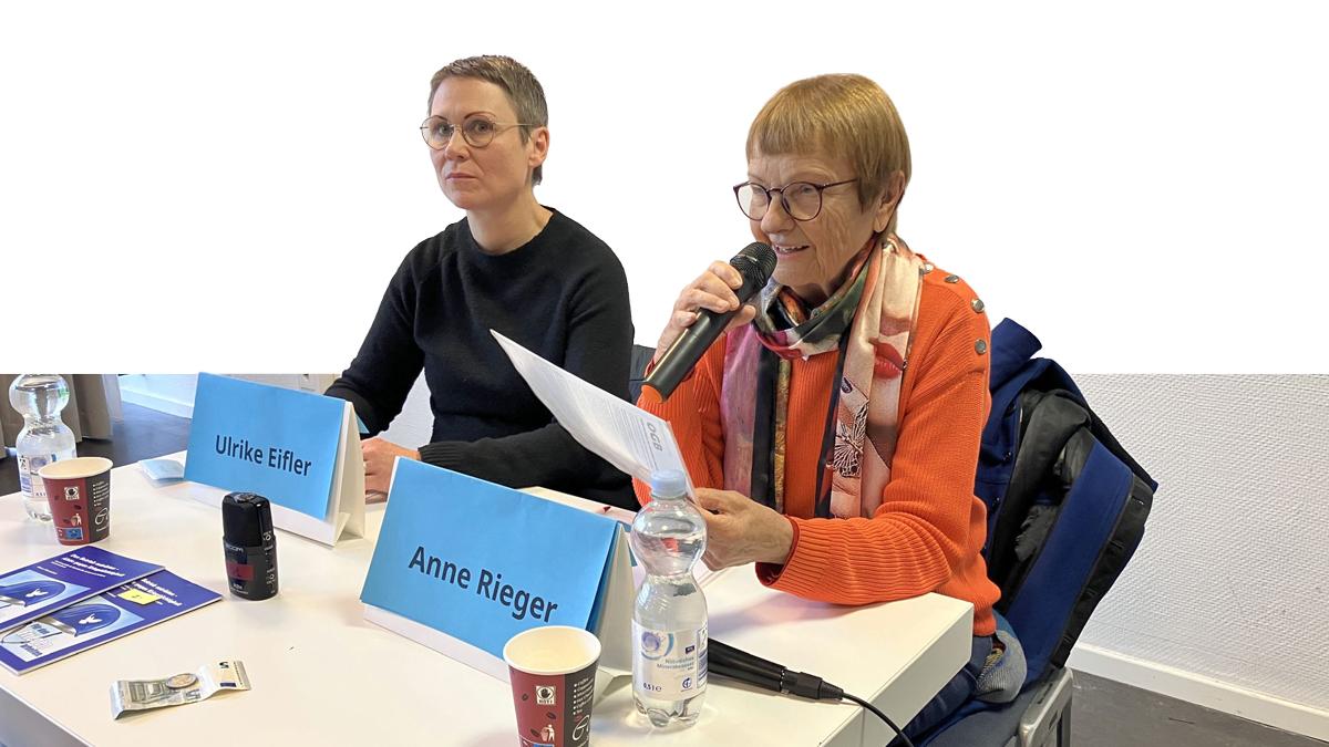 Ulrike Eifler, Mitglied des Parteivorstands von „Die Linke“ und Gewerkschaftssekretärin (IG Metall), trat für eine in den Gewerkschaften verankerte Friedensbewegung ein. Gewinne die Friedensbewegung Beschäftigte in den Betrieben für ihr Anliegen, gewinne sie an Durchsetzungskraft. „Es gibt keine rechtere und gefährlichere Politik als die Vorbereitung eines Krieges.“ Die „Zeitenwende“ ordne alles der Kriegsvorbereitung unter. Das erhöhe den Druck auf die Gewerkschaften. Die bräuchten „zuallererst unsere Unterstützung und erst im zweiten Schritt unsere solidarische Kritik“. Eifler machte auch Mut: Sie erinnerte daran, dass streikende Arbeiter den Ersten Weltkrieg beendeten. Der Zweite Weltkrieg habe erst begonnen werden können, nachdem die „großen Klassenorganisationen der Arbeiter- und Gewerkschaftsbewegung“ zerschlagen worden seien. Das zeige, dass die Kraft und Stärke der organisierten Arbeiter- und Gewerkschaftsbewegung Kriege verhindern oder beenden könnten. Der Sozialkahlschlag der Bundesregierung biete eine Chance, die Friedensfrage in gewerkschaftliche Debatten zu tragen. Dass diese Diskussion in Bewegung gekommen sei und mehr geschehe, „als wir in unserer politischen Ungeduld häufig vermuten“, stimme sie optimistisch, so Eifler.