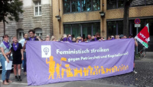 Jüngst veröffentlichte Zahlen über Gewalt an Frauen sind erschreckend. 360 Mädchen und Frauen wurden im letzten Jahr Opfer von Femiziden. Das heißt, dass fast ein Femizid pro Tag in Deutschland verübt wird. 52.330 Frauen und Mädchen wurden Opfer von Sexualstraftaten. Diese Zahlen steigen seit Jahren. Sie sind unter anderem auch eine Folge dessen, dass in Deutschland über 14.000 Frauenhausplätze fehlen. Kein Wunder, wenn das Geld in Rüstung fließt und für Frauenhäuser und Projekte gegen Gewalt an Frauen keins mehr da ist. Ein großes Transparent auf der Demo formulierte die klare Botschaft: „Gewaltschutz kostet Geld und rettet Leben. Gewaltschutzgesetz jetzt!“