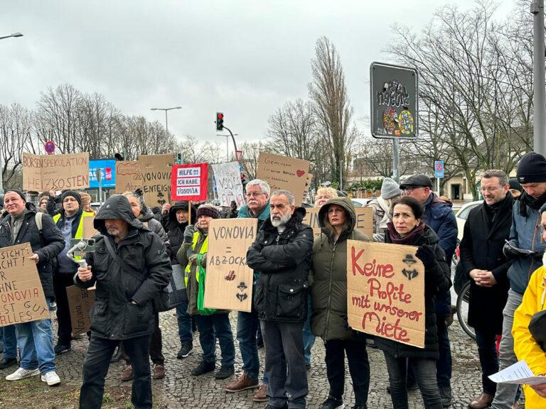 Am 13. Januar demonstrierten Mieterinnen und Mieter in Berlin-Tempelhof gegen die Heiz­kostenabzocke bei Vonovia. (Foto: Peter Witt via facebook)